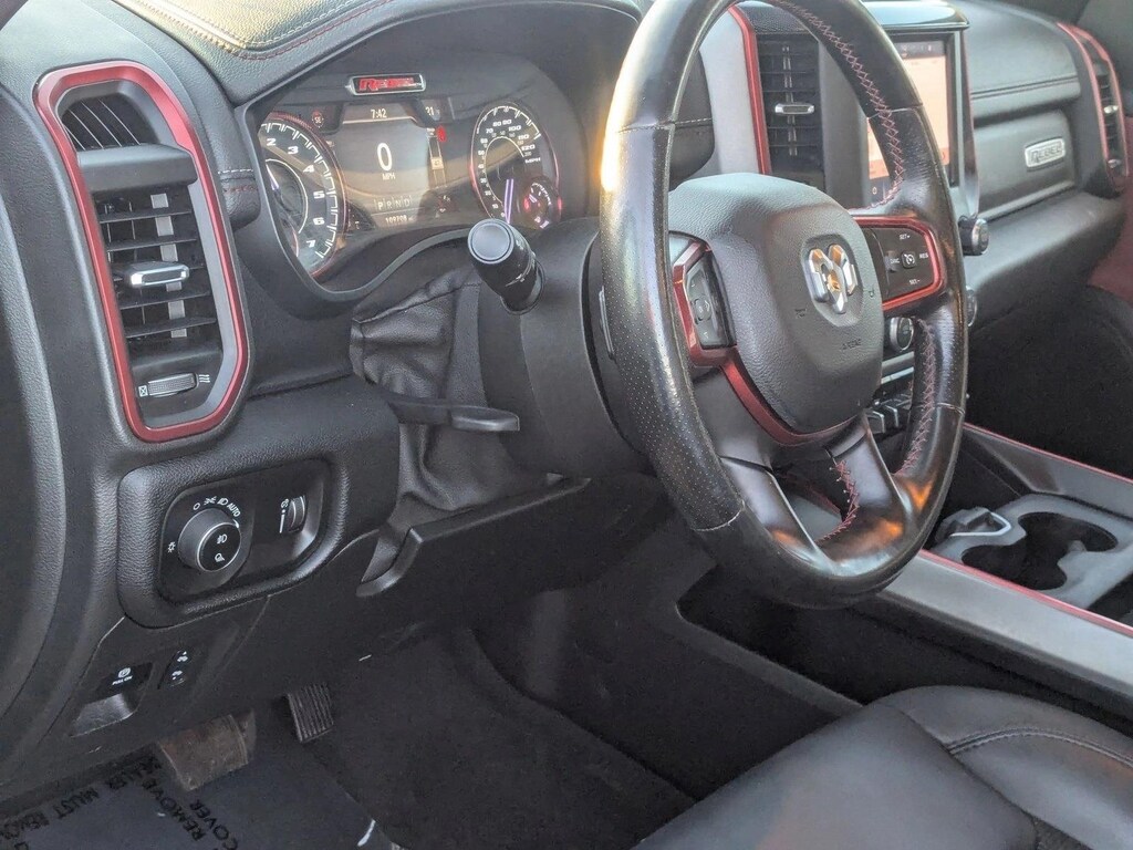 AutoNation CDJR Southwest has a wide selection of exceptional pre-owned vehicles to choose from, including this 2022 Ram 1500. This Ram includes: ENGINE: 5.7L V8 HEMI MDS VVT ETORQUE Gas/Electric Hybrid 8 Cylinder Engine MONOTONE PAINT TRANSMISSION: 8-SPEED AUTOMATIC (8HP75) 8-Speed A/T Transmission w/Dual Shift Mode A/T REBEL LEVEL WiFi Hotspot Driver Vanity Mirror Smart Device Integration Integrated Turn Signal Mirrors Passenger Vanity Mirror Power Mirror(s) Heated Steering Wheel Universal Garage Door Opener Rear Defrost Heated Front Seat(s) Satellite Radio Adjustable Pedals Bluetooth Connection Passenger Illuminated Visor Mirror Driver Illuminated Vanity Mirror Requires Subscription BILLET SILVER METALLIC CLEARCOAT QUICK ORDER PACKAGE 27W REBEL TRAILER BRAKE CONTROL RED/BLACK, CLOTH/VINYL LOW BACK BUCKET SEATS Vinyl Seats Cloth Seats Bucket Seats *Note - For third party subscriptions or services, please contact the dealer for more information.* The best part about this well-maintained vehicle is that it is a CARFAX one-owner vehicle. Pull up in the vehicle and the valet will want to parked on the front row. This Ram 1500 Rebel is the vehicle others dream to own. Don't miss your chance to make it your new ride. This 4WD-equipped vehicle will handle majestically on any terrain and in any weather condition your may find yourself in. The benefits of driving an Four Wheel Drive vehicle, such as this Ram1500 Rebel, include superior acceleration, improved steering, and increased traction and stability. Service records are included with the purchase of this well-maintained pre-owned vehicle. The first thing anyone notices about your car is the paint job and this car's is near perfect.